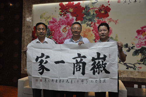 6月17日,中国长城学会吴国强秘书长、北京安徽商会副会长江志勃一行到保定长城汽车股份有限公司调研期间,特意到保定安徽商会进行了走访。 吴国强秘书长、江志勃副会长与会长张万义、秘书长郭泽斌在中通泵业贵宾室举行了亲切交谈。期间,吴国强秘书长详细询问了保定安徽商会的发展现状,以及在保安徽乡友的生活工作情况。会长张万义向吴国强秘书长、江志勃副会长一行详细介绍了目前保定安徽商会的发展现状,以及在保乡友的工作学习生活情况。 对于保定安徽商会的发展,同是安徽乡友在北京发展的吴国强秘书长给予了积极的评价和赞赏。他说,保定安徽商会能在作为一个地级城市的保定生根发展,而且发展的这么好,在全国地级城市中也不多见。这充分说明了在保安徽人创业精神的很好体现。更展示了我们在异乡发展的安徽人,睿智进取的徽商风采。 座谈期间,吴国强秘书长向在座人员分析了目前全国经济形势走向和发展趋势。面对当前京津冀经济一体化的大好时机,吴国强秘书长特意强调,希望保定安徽商会会员企业,能够抓住京津冀经济一体化这次契机,实时调整部署企业发展方向,联合北京、天津安徽兄弟商会,共谋发展。并诚邀张会长、郭秘书长有机会到北京中国长城学会、北京安徽商会走访,共商发展大计。张万义会长对吴国强秘书长的邀请表示感谢。表示有机会一定到北京和天津拜会兄弟商会,这也是保定安徽商会难得的学习请教机会,在将来可能合作的项目上,希望三地徽商能够资源共享,互相支持,互相帮助。为徽商企业提供更好更丰富的发展机会和平台。也希望京、津兄弟商会经常到保定安徽商会来,对商会的工作和会员的企业多多指导。 走访结束时,吴国强秘书长、江志勃副会长一行特向保定安徽商会赠送“天下徽商”书法一幅,以示天下徽商一家亲的浓浓情意。(秘书处)