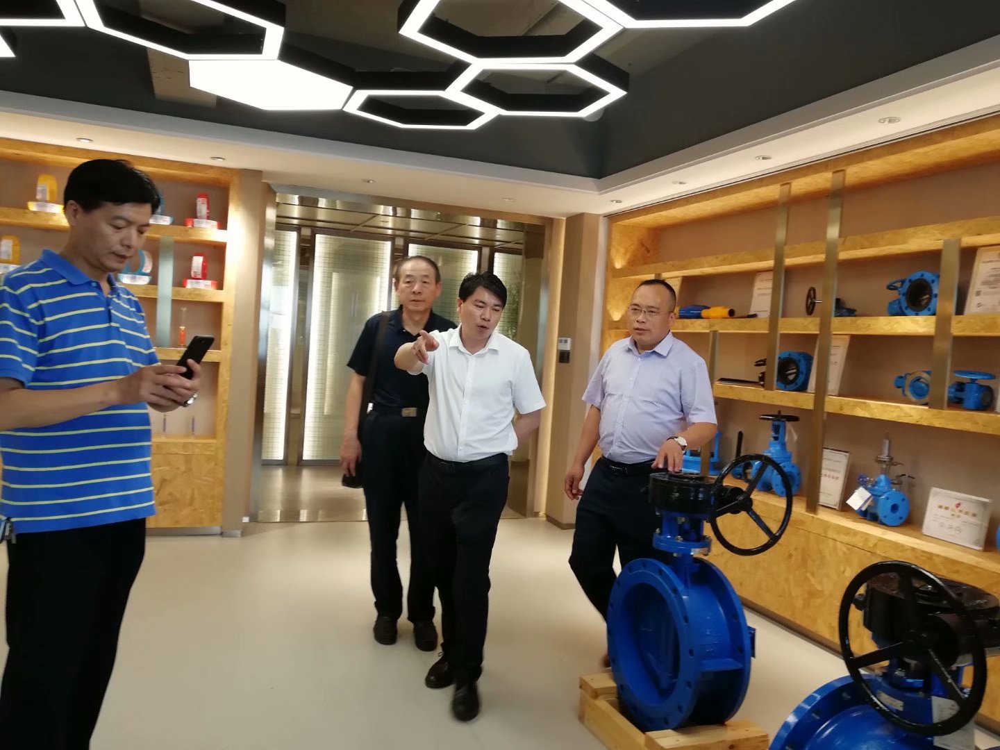 保定市福建商会会长李剑雄、秘书长王自峰等领导带领大家一起参观了福建商会党建室、产品展示区、会长办公室、秘书处、部分会员企业等。