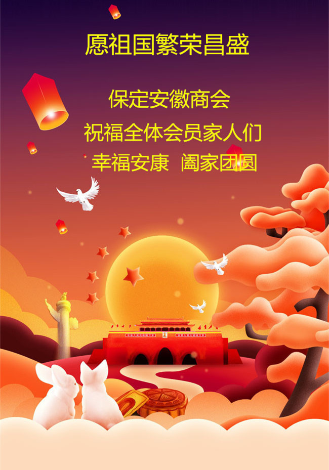 浓情中秋,欢乐国庆--保定安徽商会恭祝您双节快乐,阖家团圆!