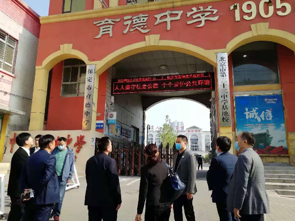 一直以来,众多在保经商的安徽商会会员子女面临上学难,上优质学校更难的困境。为了破困局解民忧,2021年4月15日,保定安徽商会会长程勇带领考察组一行到保定市育德中学参观考察。上午九时许,商会考察组一行来到育德中学,学校领导热情的接待了考察组一行。接着安徽商会的考察组跟随育德中学郭景芳书记的脚步参观了育德中学