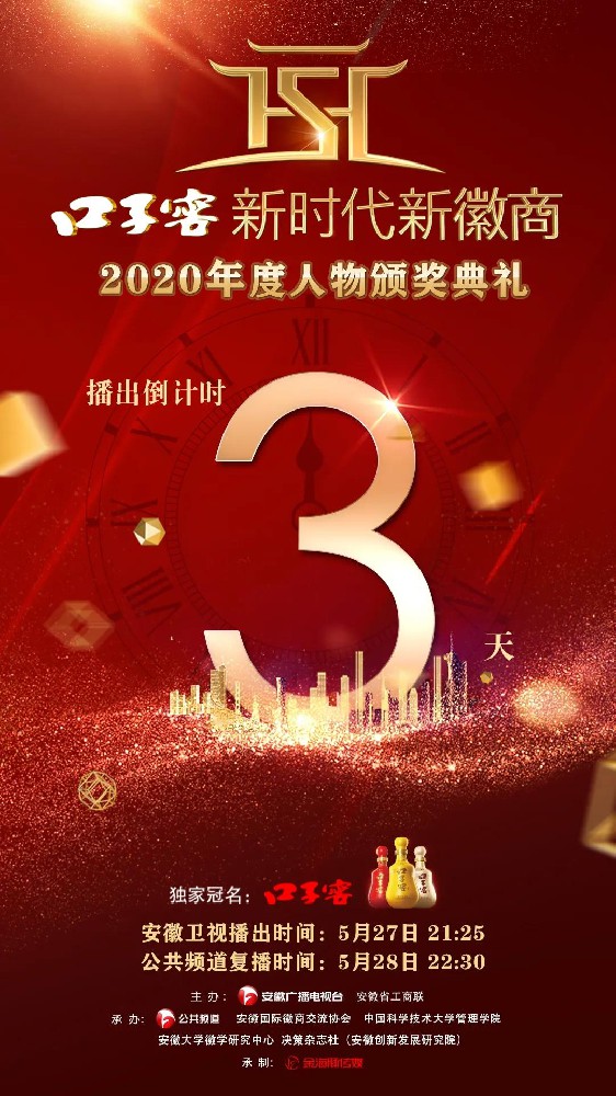 倒计时3天!口子窖“新时代新徽商”2020年度人物颁奖典礼即将安徽卫视播出